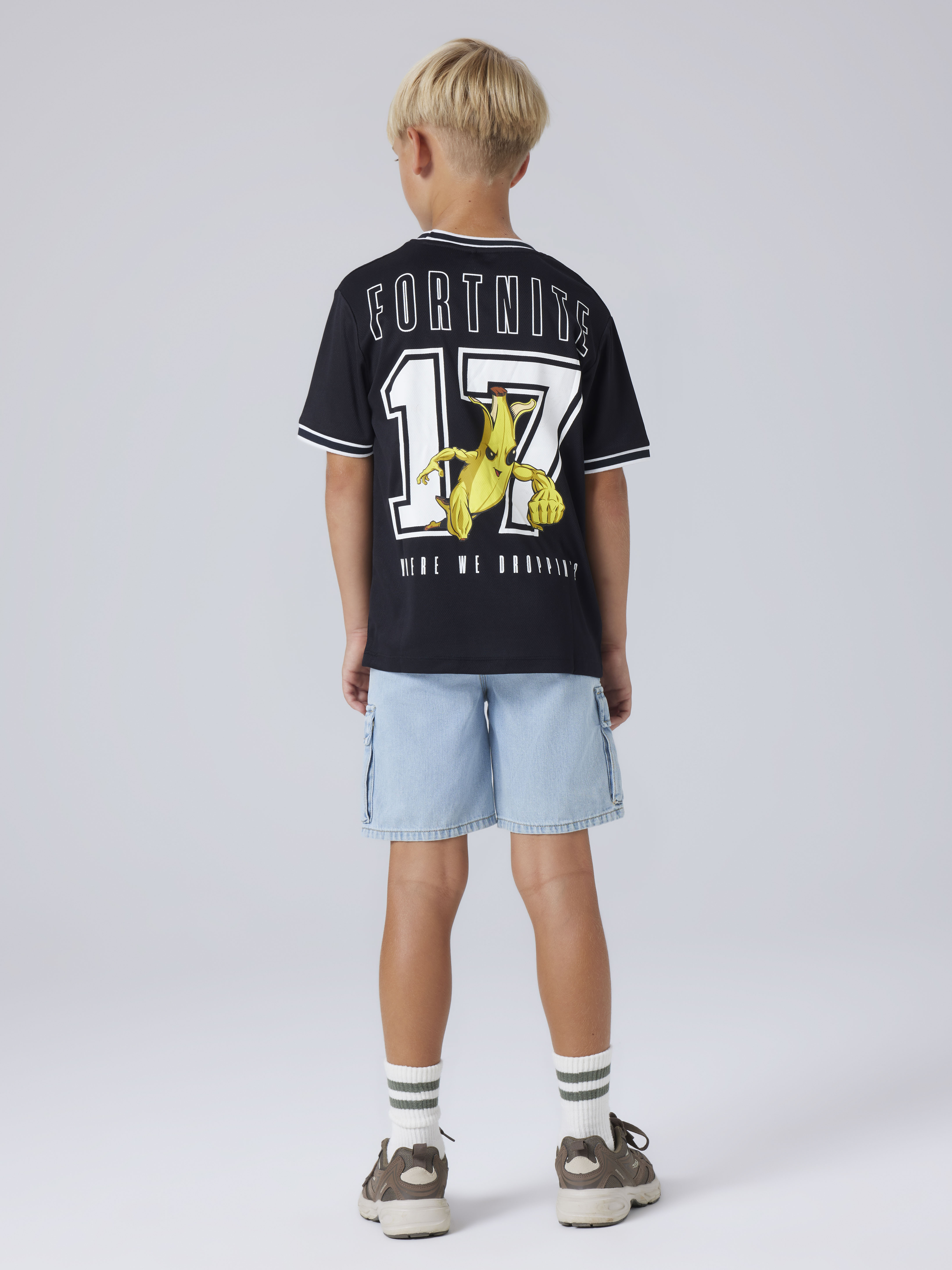 • Stort print med Fortnite foran og bagpå