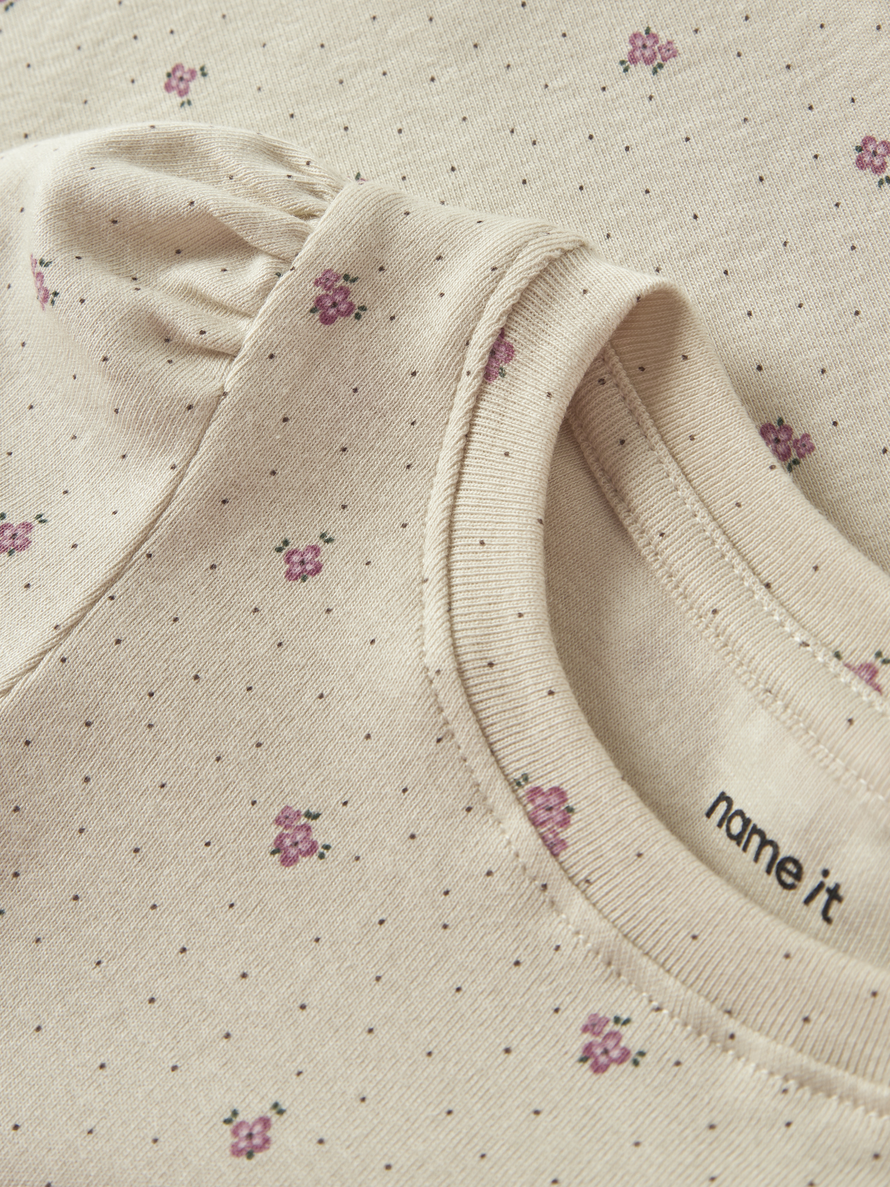 - All-over print med prikker og blomster