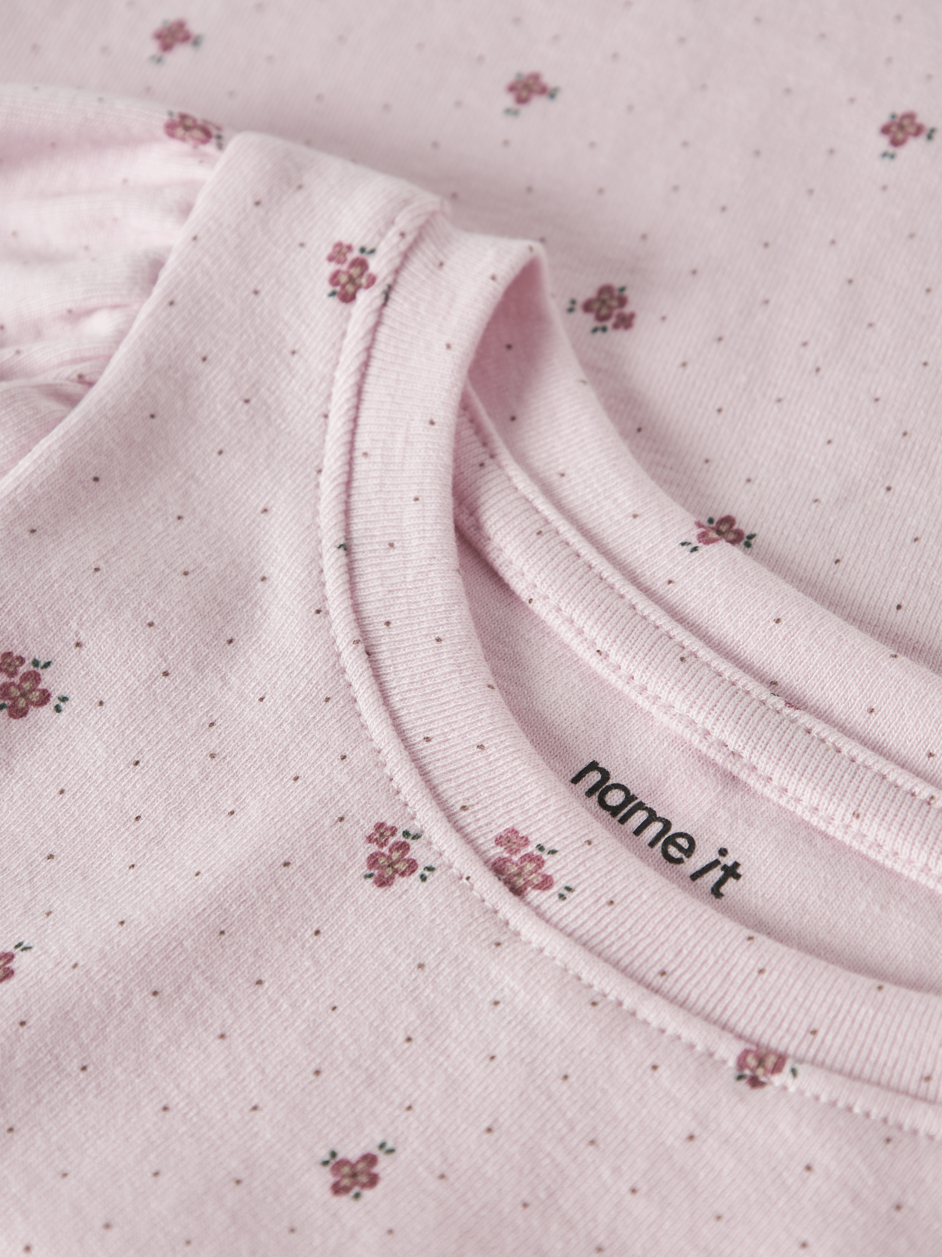 - All-over print med prikker og blomster