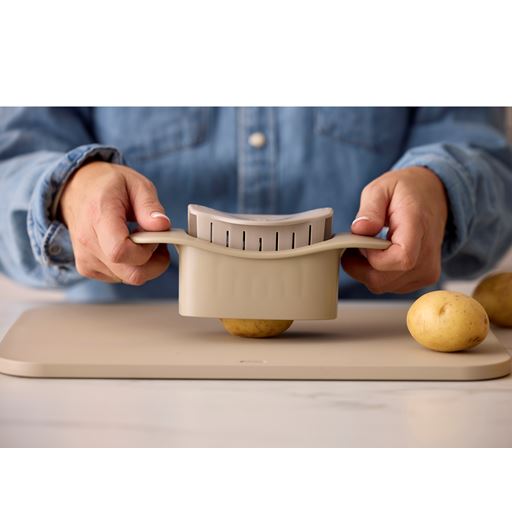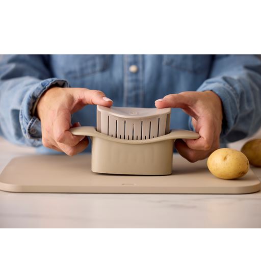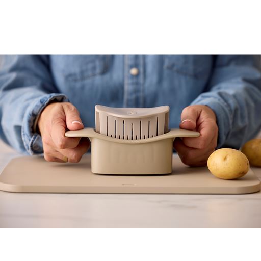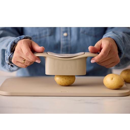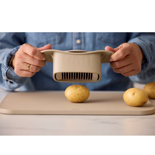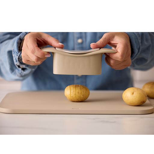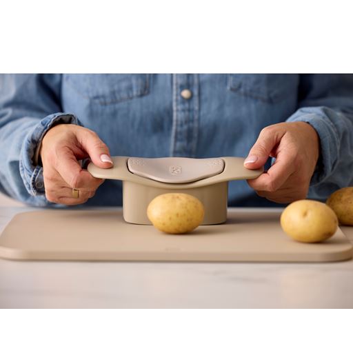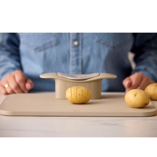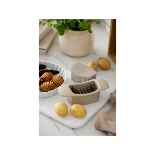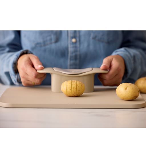 - Hasselback skæren presses ned over kartoflen