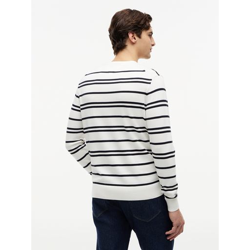 Essential Cotton Crew Neck Striktrøje, Ivory Petal/ Dessert Sky, XXL
